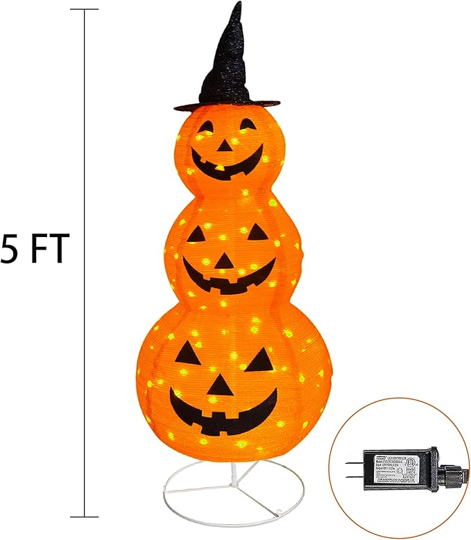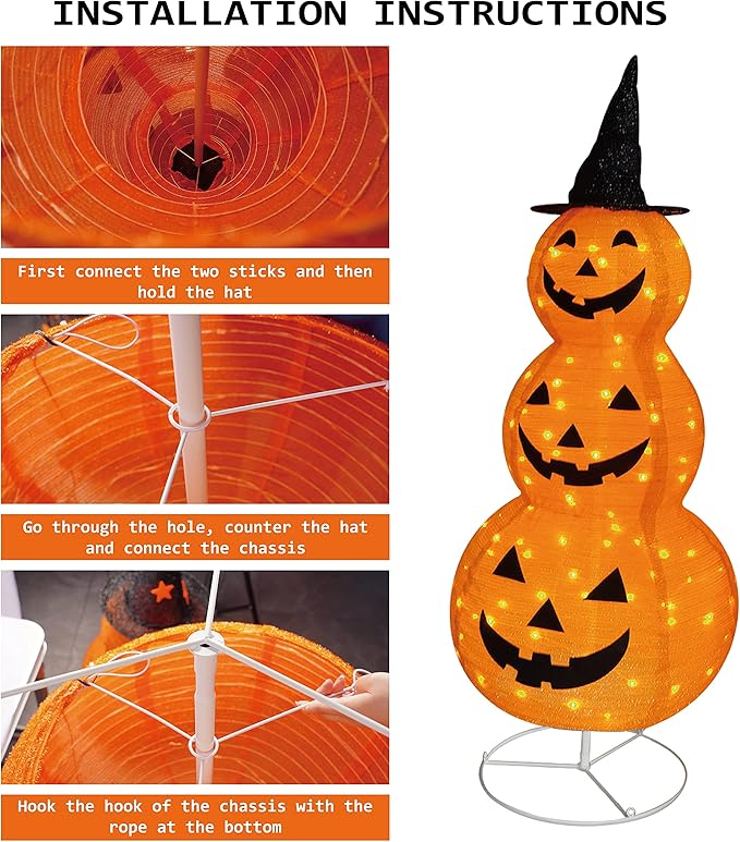 Ideal Halloween Pumpkin decor: Pre-install with 50 LED lights, Illuminate the Halloween night, there is no doubt that your home will be the focus of neighbors. It's a wonderful choice for Halloween display stand for commercial use or indoor, outdoor, courtyard, garden, lawn, home, living room decor.